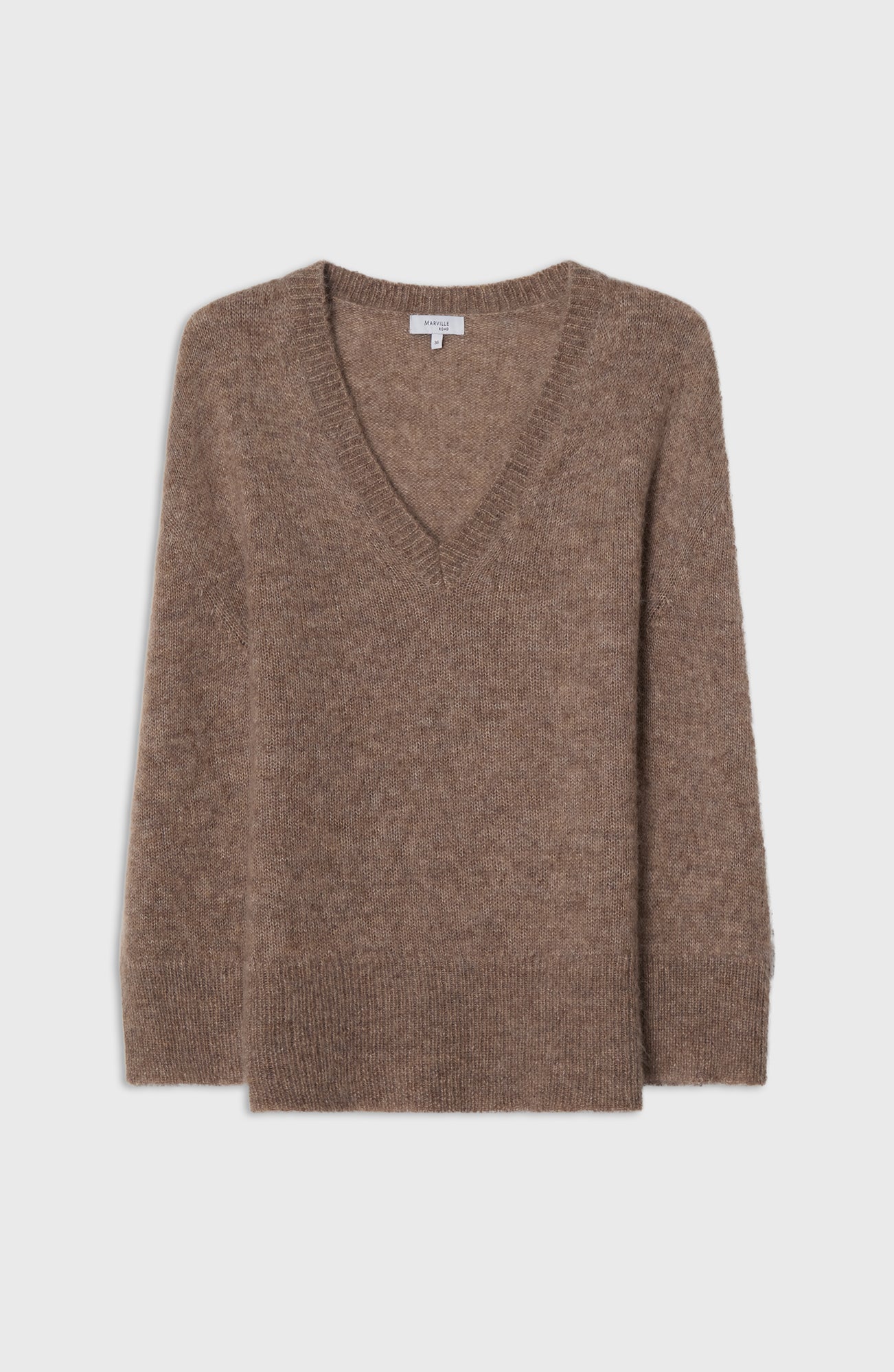 Weiche Struktur, dezentes Volumen. Der Giulia Alpaka Pullover ist aus supersoftem Alpaka-Garn mit leicht gebürsteter Textur, überschnittenen Schultern und schmeichelhaftem V-Ausschnitt gestrickt. Ein warmes, aber luftiges Lieblingsstück – perfekt zum Schichten oder für sich allein getragen.