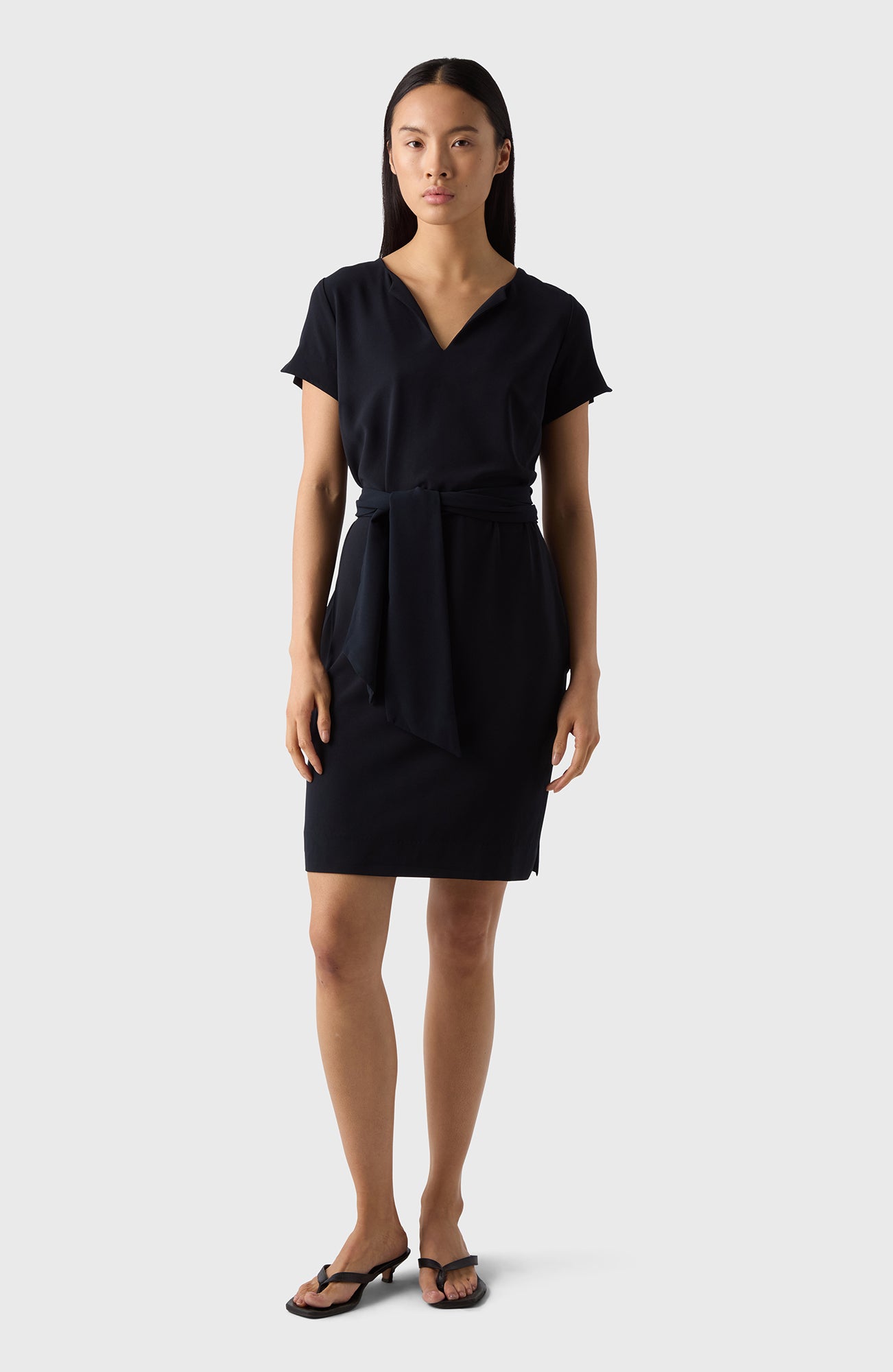 Dieses kurzärmelige Midikleid besteht aus weichem Crêpe und hat einen vorteilhaften Ausschnitt. Tragen Sie Alma so, wie sie ist, oder wickeln Sie sich mit dem dazugehörigen Gürtel ein. Betrachten Sie Alma als Ihren ewigen Kleiderschrankhelden. Von Urlauben über Vorstellungsgespräche bis hin zu schicken Partys – sie steht Ihnen bei jedem Schritt zur Seite.