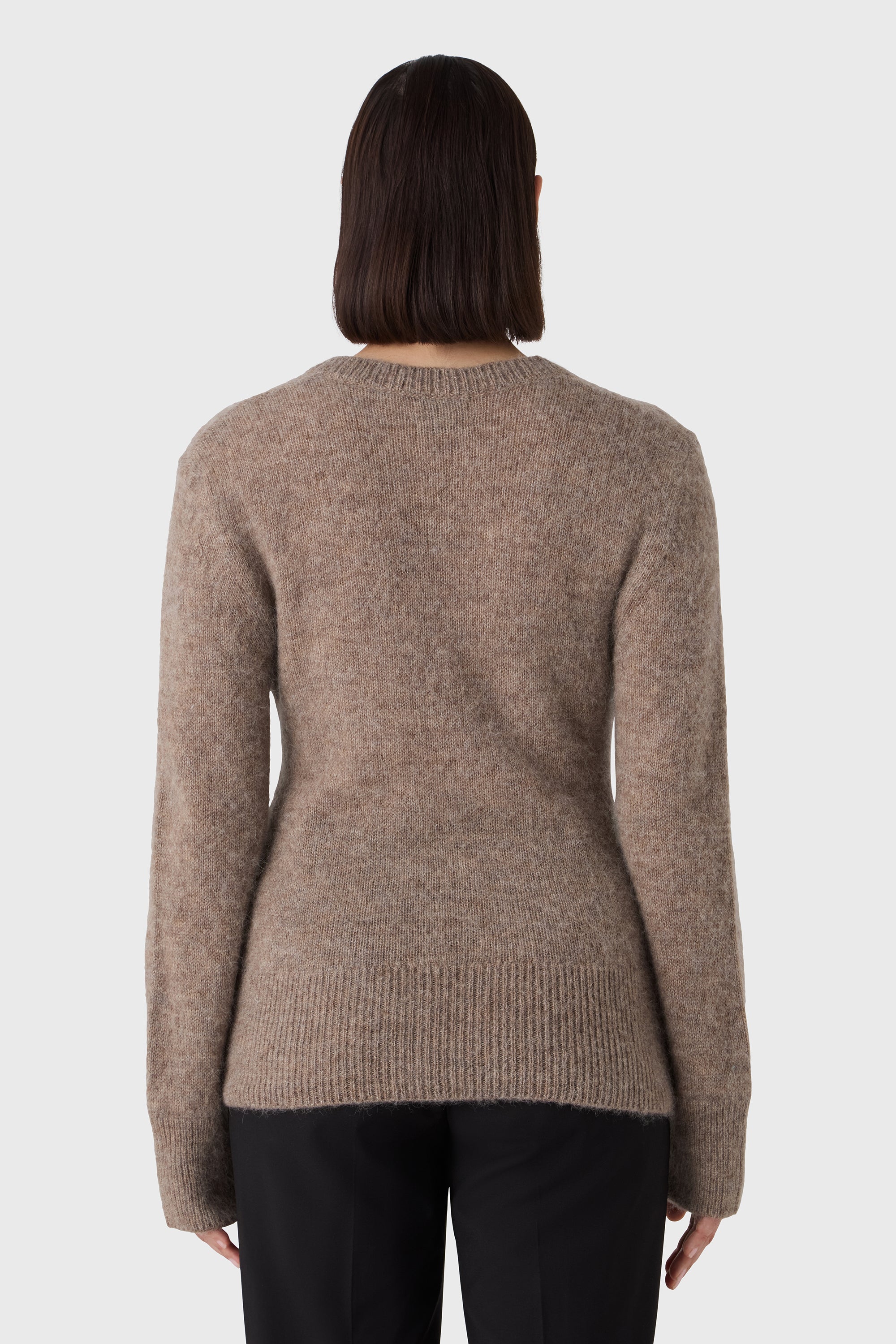 Soft structure, subtle volume. The Giulia Alpaca Jumper is knitted from supersoft alpaca yarn with a lightly brushed texture, dropped shoulders and a flattering V neckline. A warm yet airy favourite — perfect for layering or wearing on its own.