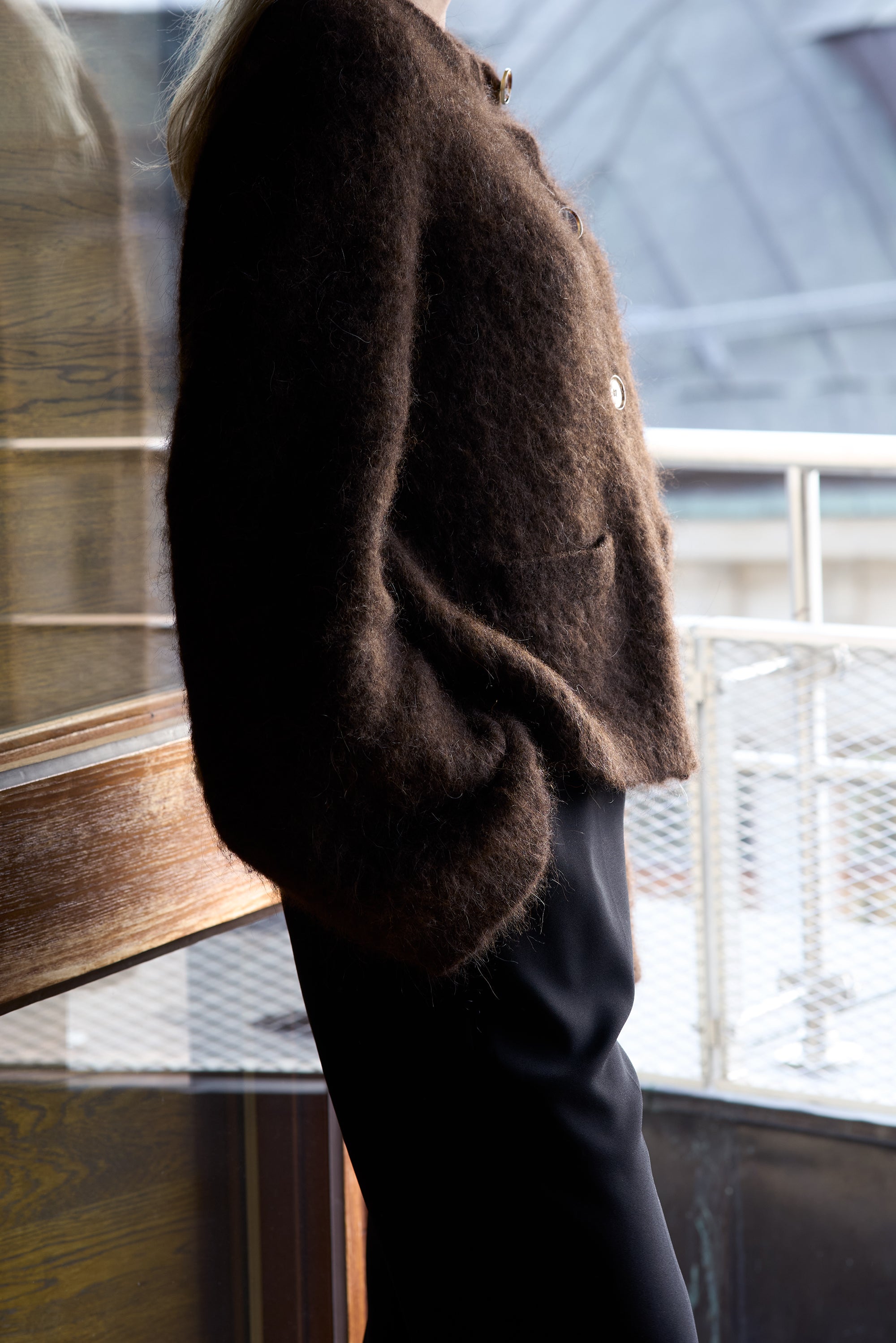 Soft volume with a textured finish. The Madeleine Cardigan is knitted from supersoft alpaca with a round neckline, wide sleeves and front patch pockets. An effortless piece with subtle structure — wear it open or buttoned, layered or light.