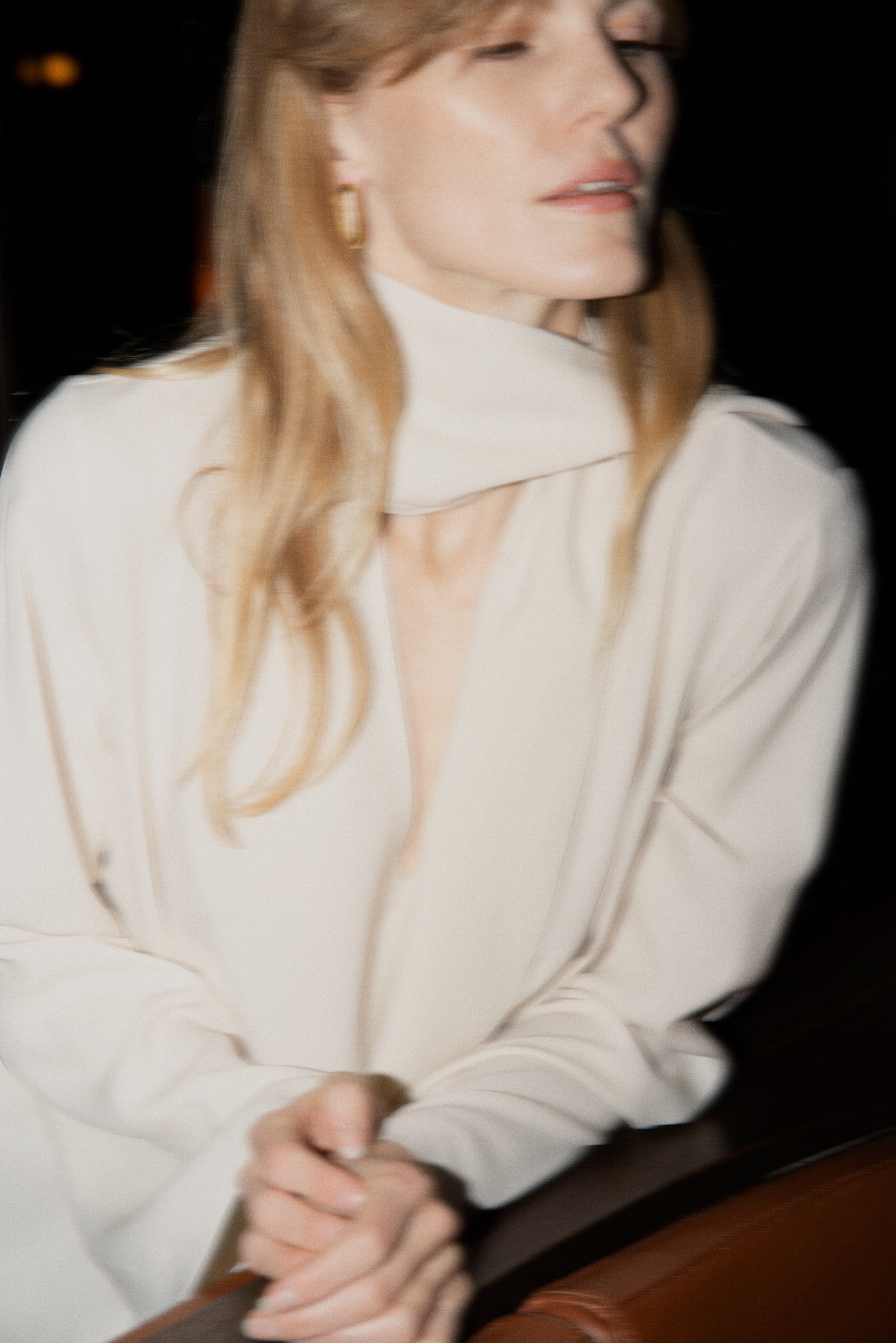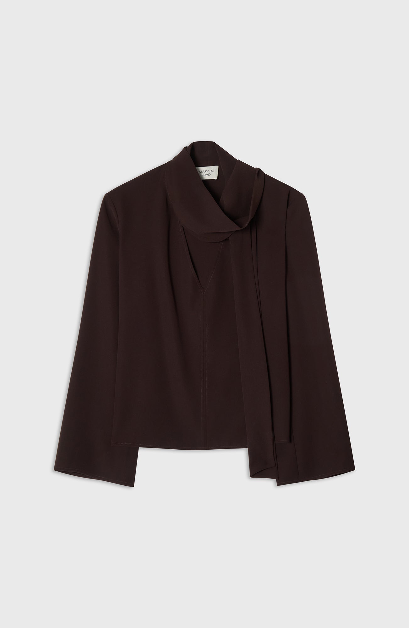 Effortless elegance with a twist. The Renée Blouse is made from soft poly twill and features long sleeves, a fluid drape and a generous shawl collar that can be styled in multiple ways. Tie it as a bow, let it fall freely, or wrap it around — it adapts to your day.