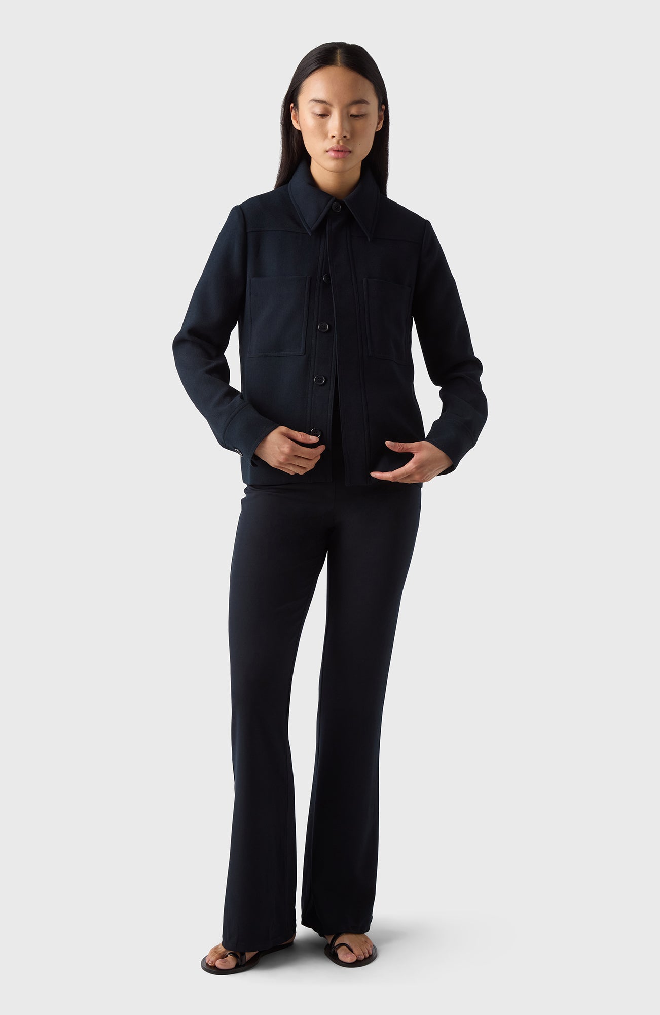 A polished, elegant feel. The straight cut and the big collar makes The Marion Jacket suitable for any occasion. Crease-resistant, perfect for travel or the office.