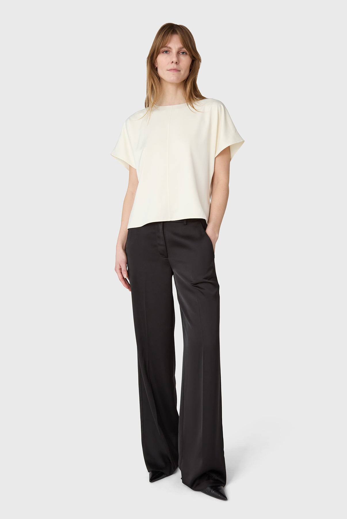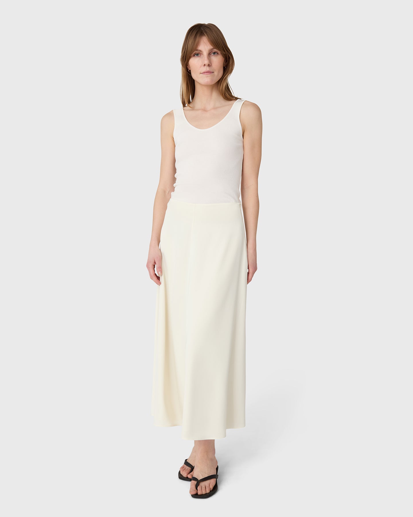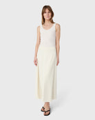 The Rhonda satinkjol är en ankellång kjol i satin stretch med ett mjukt, följsamt fall. Den diskreta sömmen framtill ger ett rent och genomarbetat uttryck. Bär den tillsammans med matchande The Mia satintopp för en sammanhållen silhuett, eller styla med ett enkelt linne för en mer avslappnad känsla. En elegant modell som rör sig naturligt mellan dag och kväll.